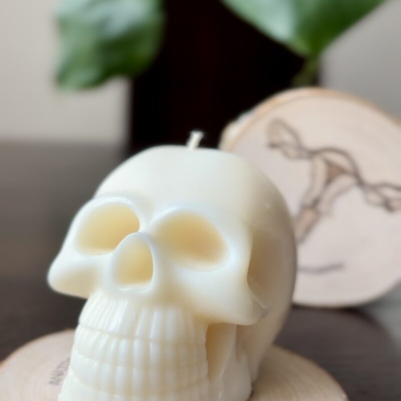 W skład zestawu wchodzi :Ręcznie wypalana anatomiczna podstawka – wykonana z naturalnych plastrów drewna i pokryta ekologiczną warstwą ochronną. Każda podstawka jest unikalna i niepowtarzalna, mogą wystąpić drobne różnice w kolorze i fakturze drewna. Mała sojowa świeca w kształcie czaszki – wymiary: około 7 × 5 cm 💌 Możliwość personalizacji drogą mailową⏳ Czas realizacji: 1–7 dni roboczych💰 Cena obejmuje: świecę + podstawkę Wymiary podstawki: Średnica: 8,5–10 cm Grubość: około 1 cm