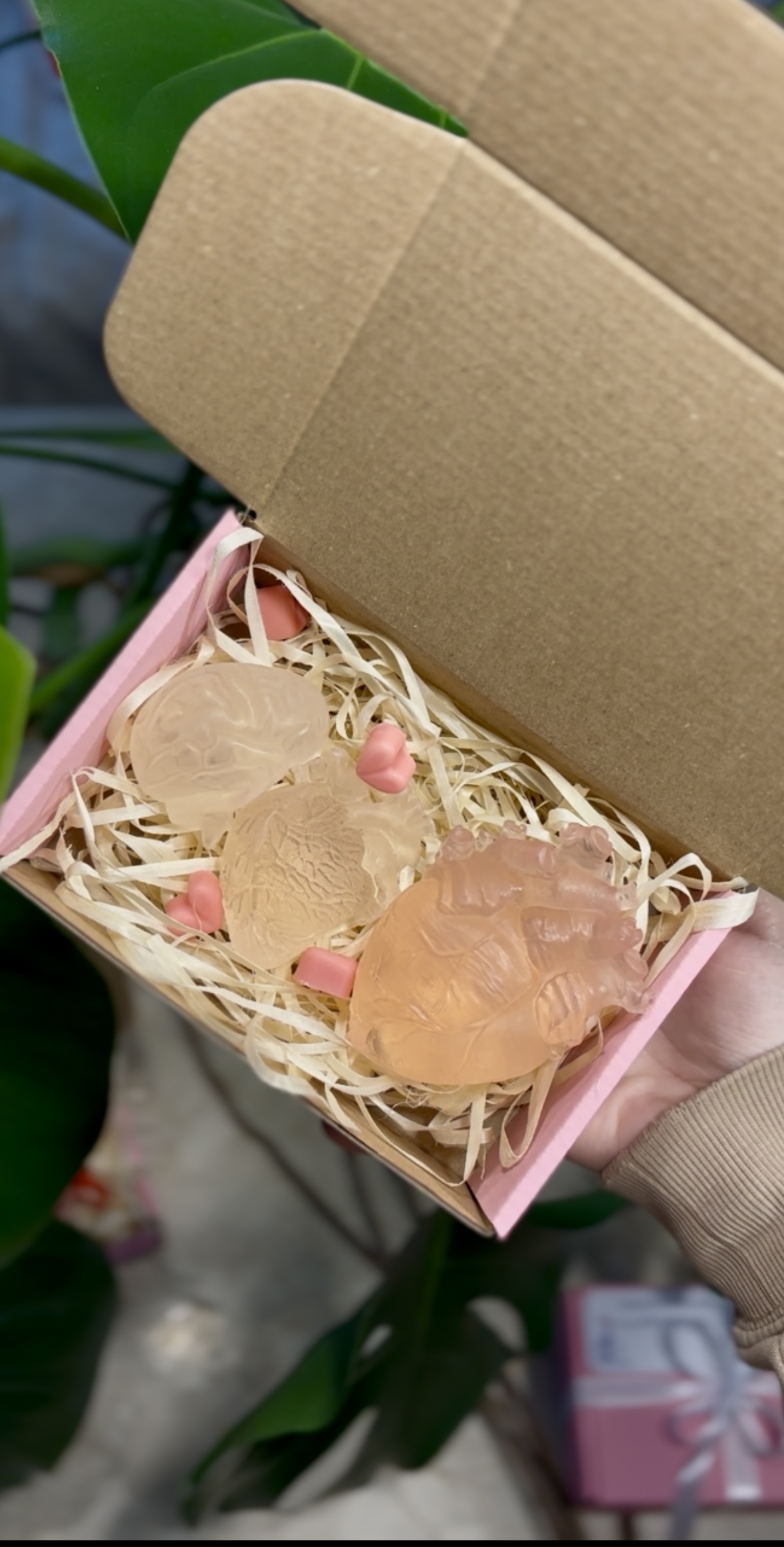Hej Anatomiczne Świry! Dzisiaj mamy dla Was limitowane zestawy walentynkowe ❤️ Prezent idealny dla anatomicznych mydlarzy. Zestaw zawiera: anatomiczne mydło serce (70g) o zapachu chocolate-cherry , 2 anatomiczne mydełka do wyboru o zapachu chocolate-cherry , wypełnienie, woski sojowe do dekoracj. Nasze anatomiczne mydła tworzymy ręcznie używając przy tym tradycyjnych metod co pozwala zachować wszystkie dobroczynne właściwości naturalnych składników. Gliceryna i Sorbitol posiadają właściwości nawilżające i wygładzające co umożliwia wygładzenie skóry, wspomaga również naturalną barierę lipidową. Idealne na zimowe dni. Pozostawiają na skórze aromatyczny czekoladowo-wiśniowy zapach. Możliwość personalizacji zestawu drogą mailową. Czas wysyłki wynosi 1-10 dni roboczych 😉