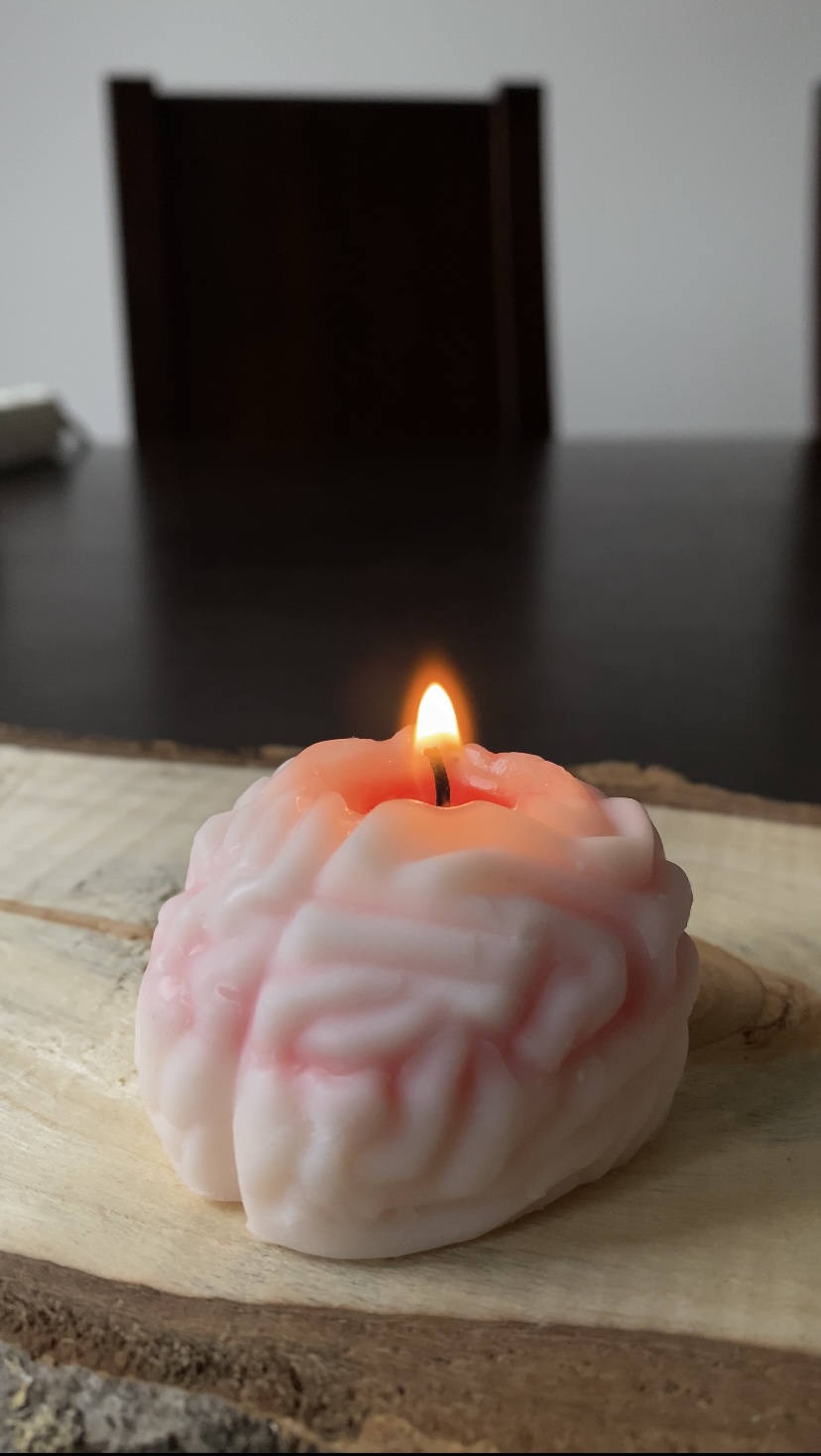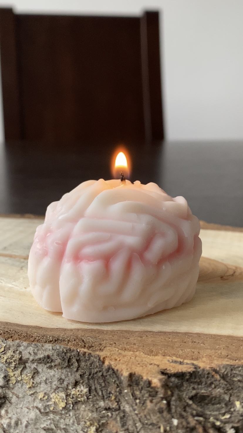 Unikalna, ręcznie robiona świeca sojowa w kształcie mózgu, idealna dla fanów anatomicznych detali i wyjątkowych dekoracji.