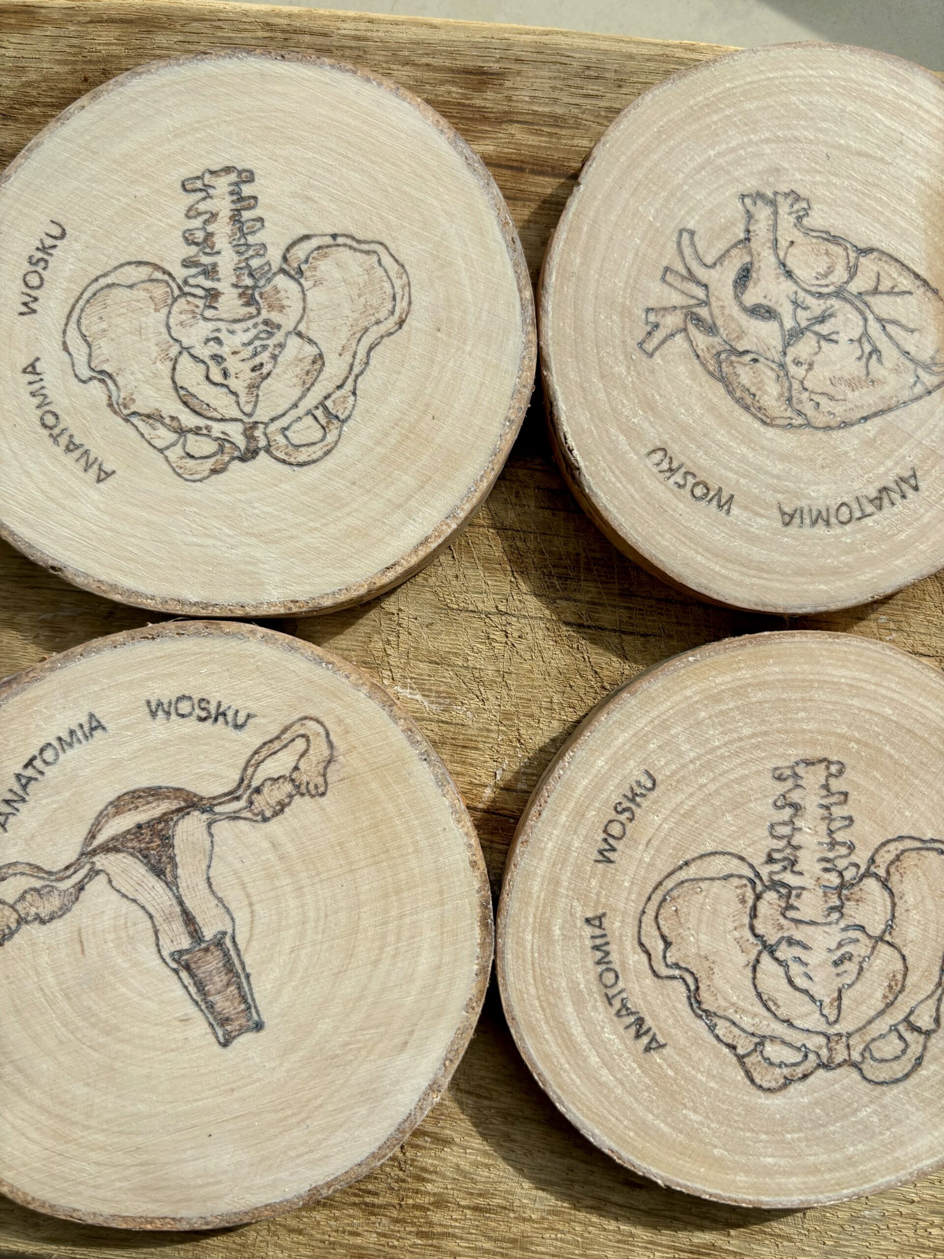Cześć! Dzisiaj mamy dla Was ręcznie wypalaną podstawkę pod świeczkę/kubek, którą możecie zaprojektować samodzielnie. Projekty można podsyłać mailowo na anatomiawosku@gmail.com lub na Instagramie anatomia.wosku. Na podstawie projektu podamy wycenę i czas realizacji zamówienia.Nasze produkty wykonane są z plastrów drewna, pokryte ekologiczną warstwą chroniącą przed zabrudzeniami. Ze względu na sezonowość materiału, jakim jest lite drewno zastrzegamy, iż podkładki mogą się nieznacznie różnić od tych, przedstawionych na zdjęciach poglądowych. Każdy egzemplarz jest dzięki temu wyjątkowy i niepowtarzalny.