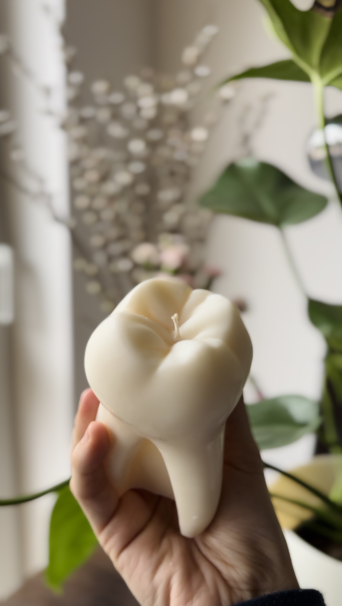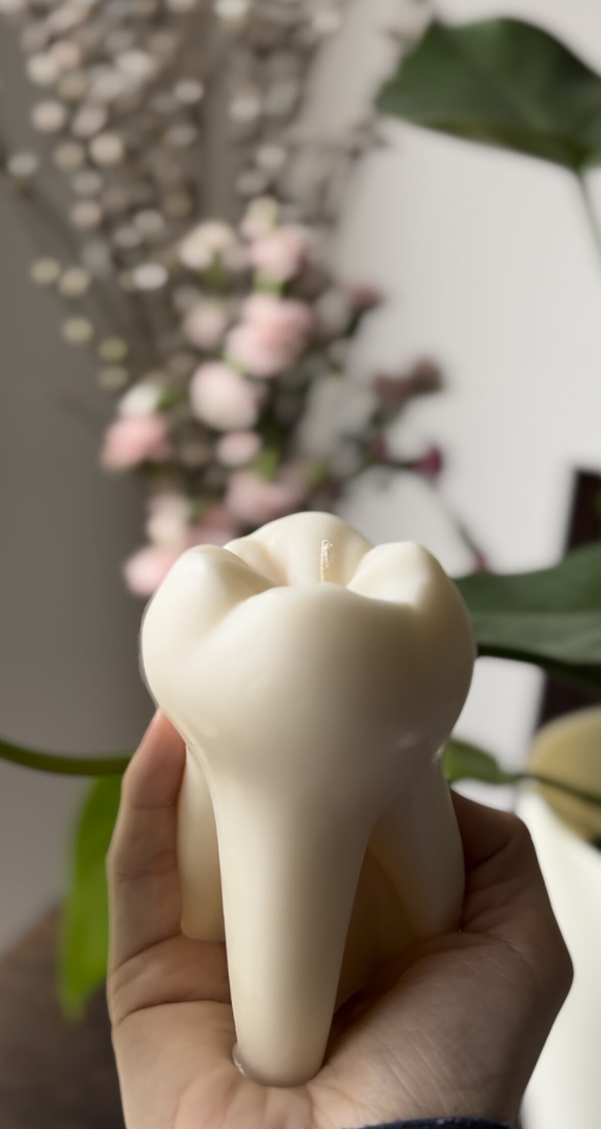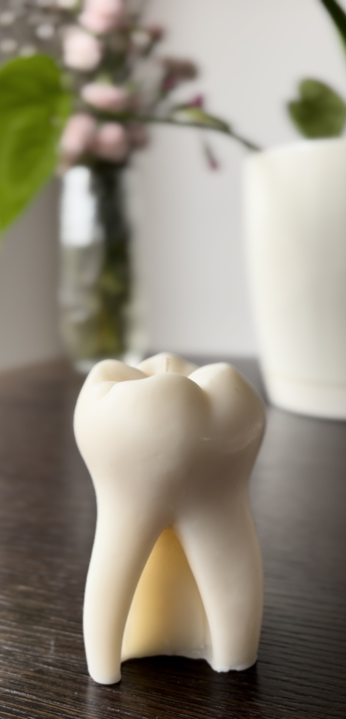 Dodaj unikalny, anatomiczny akcent do swojego wnętrza dzięki ręcznie robionej świecy sojowej w kształcie zęba.🦷