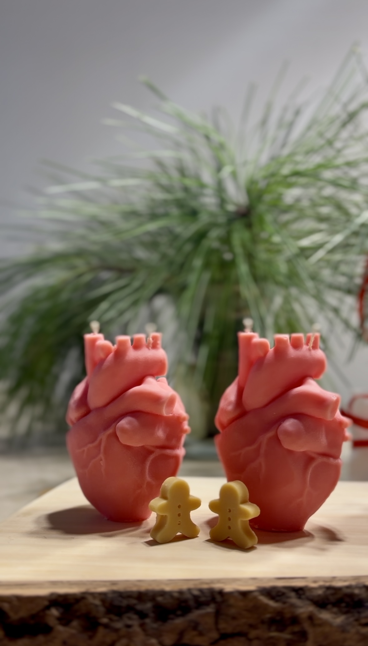 W zestawie znajdziesz dwie świece w kształcie serca wraz ze szklanymi pojemnikami, idealne jako dekoracja wnętrza lub wyjątkowy prezent dla miłośników anatomii i romantycznych dodatków.